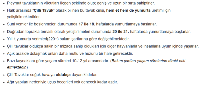 Plymouth Rock tavukları, dayanıklı ve kolay bakımı yapılan bir ırk olmalarıyla da bilinir. İyi bir açık alan tavuğudur ve genellikle bahçe veya çiftlik ortamlarında yetiştirilir. Uygun koşullarda beslendiklerinde sağlıklı ve verimli olabilirler. Sonuç olarak, Plymouth Rock tavukları, et ve yumurta üretimi için kullanılan çok yönlü, dayanıklı ve popüler bir tavuk ırkıdır.